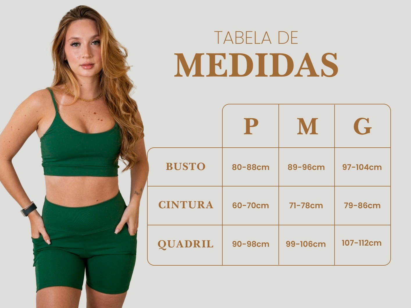 M: Busto: 89-96cm | Cintura: 71-78cm | Quadril: 99-106cm